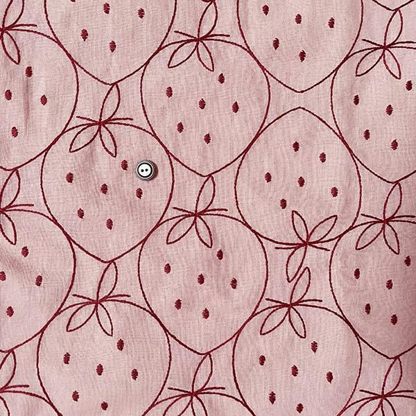 刺繍の大きめのいちごが並んだかわいい布です。やや薄手の綿生地です。