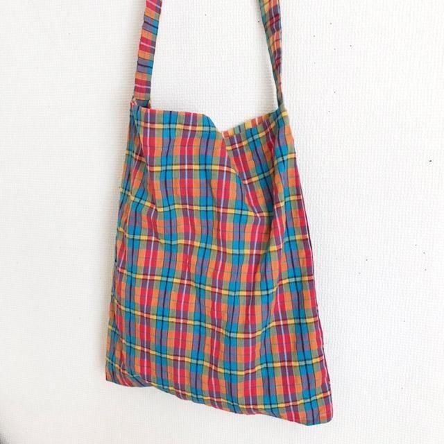 タイ北部で作られるパーカオマーというチェックの布を使ってオリジナルショルダーバッグを作りました