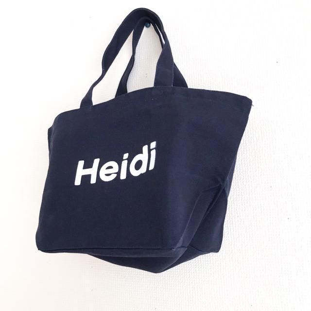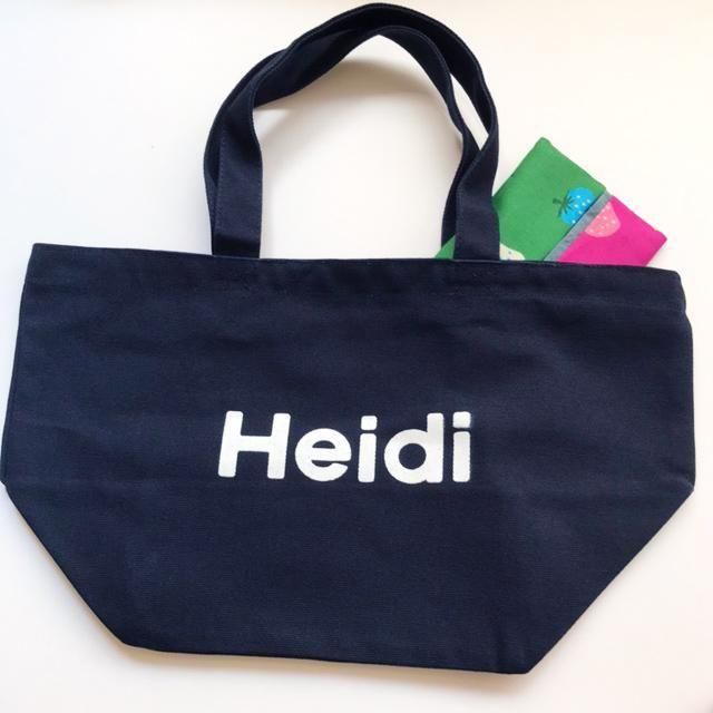 Heidiロゴをプリントしたマチの大きいミニトートです。