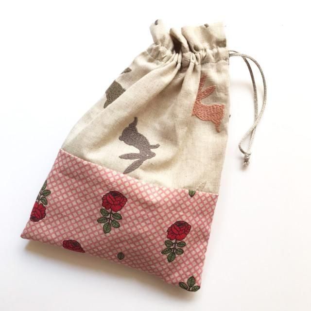 小さい巾着 4 うさぎ刺繍