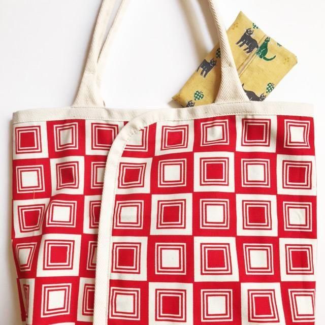作家さんがずっと温めていたレトロ調の生地で作ったトートバッグ。