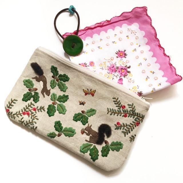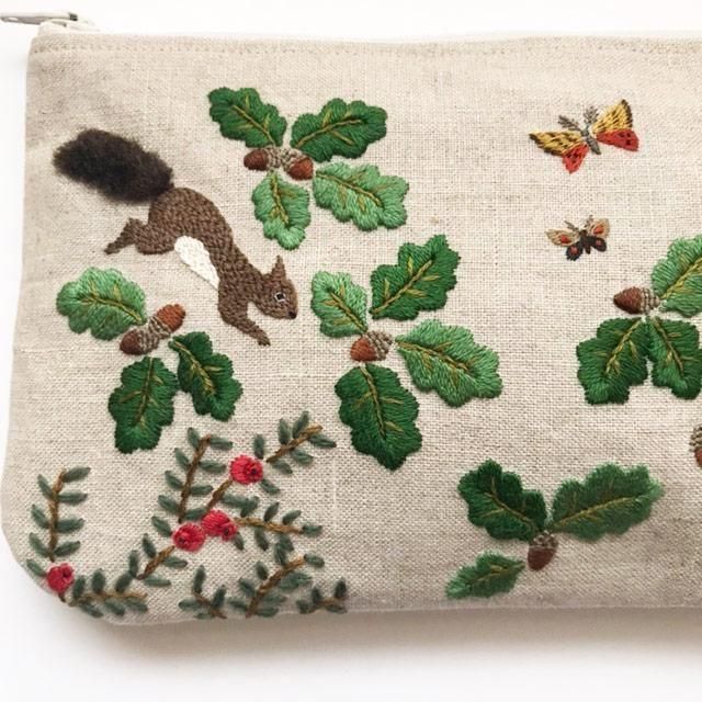 刺繍作家Petite aiguilleさんの横長ファスナーポーチ。