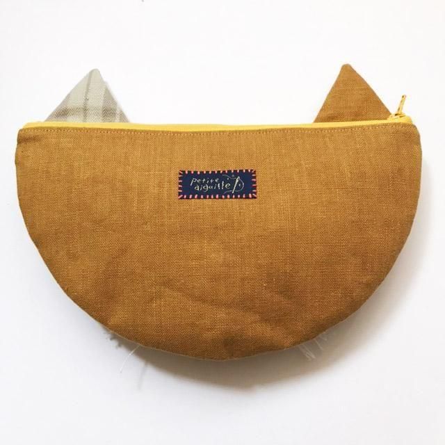 刺繍作家Petite aiguilleさんの猫の顔のポーチです。