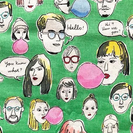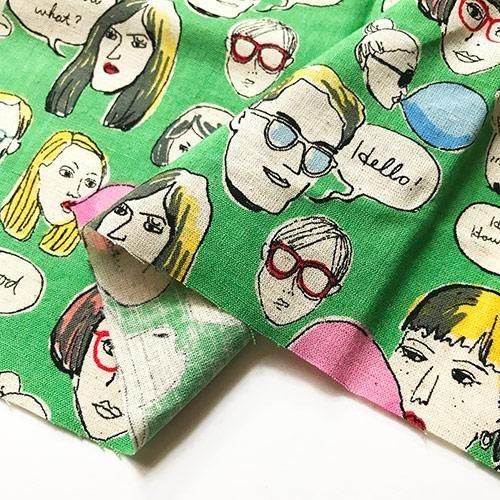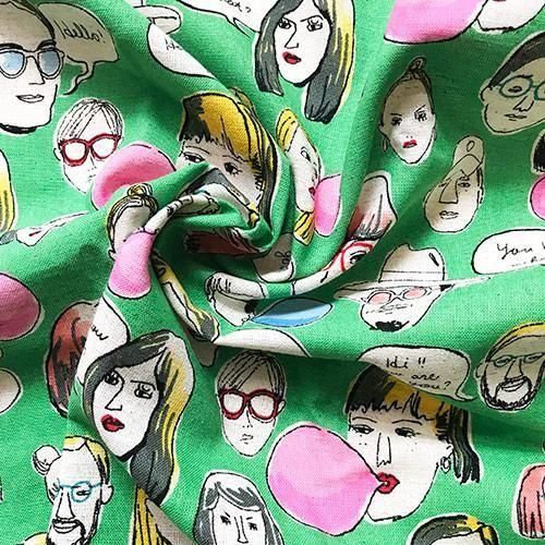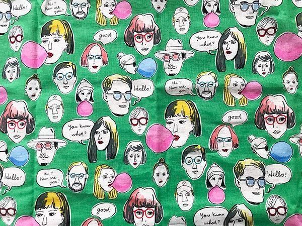 ファニーフェイス柄の布_グリーン(50cm)