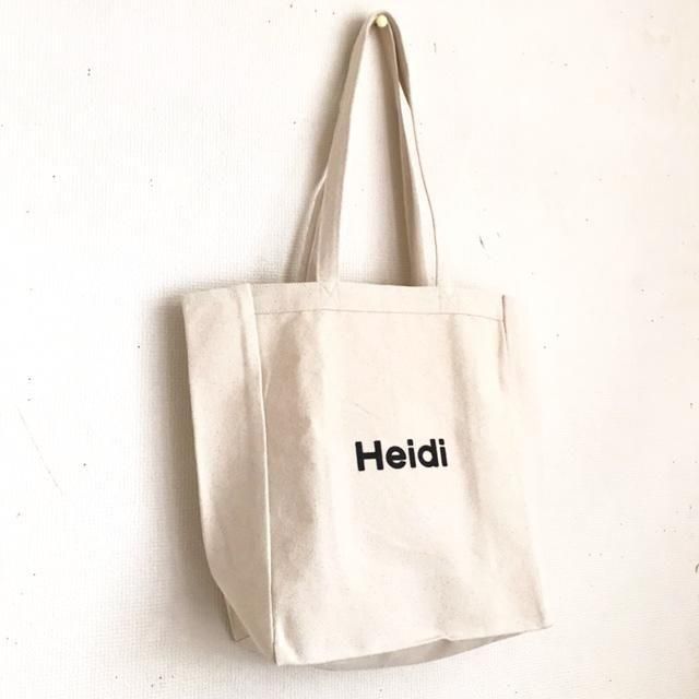 Heidiロゴのマチも大きくてA4サイズがたくさんはいる大きめトートです。中に内ポケットが2個ついていて便利です。肩に掛けられ、使い勝手のいいトートです。男性のお客様にもお使い頂けるサイズです。