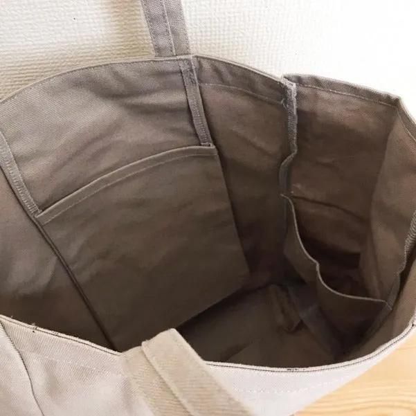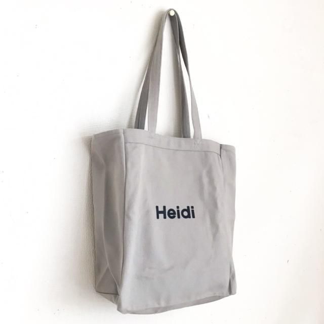 Heidiロゴのマチも大きくてA4サイズがたくさんはいる大きめトートです。中に内ポケットが2個ついていて便利です。肩に掛けられ、使い勝手のいいトートです。男性のお客様にもお使い頂けるサイズです。