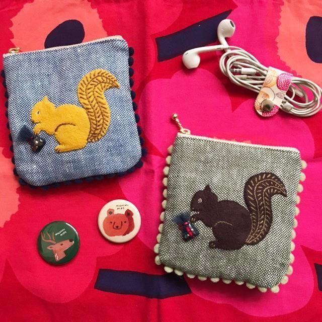 ふさふさとしたしっぽのリスがアップリケされています。