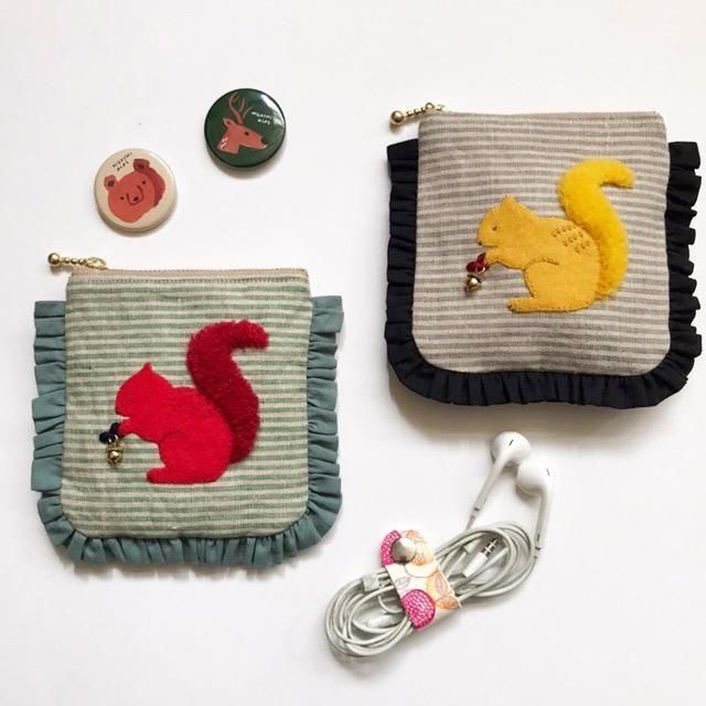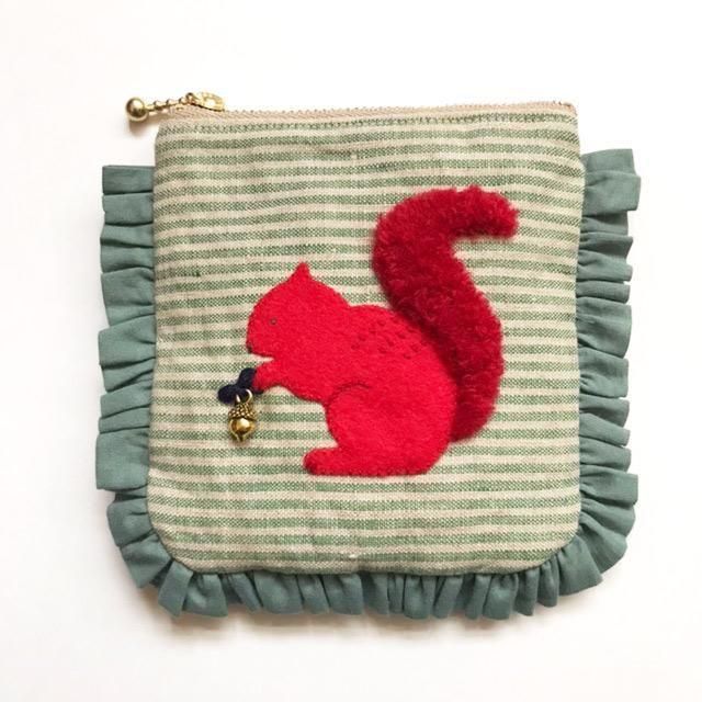 刺繍作家Petite aiguilleさんのフリル付きファスナーポーチ。