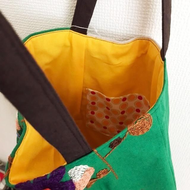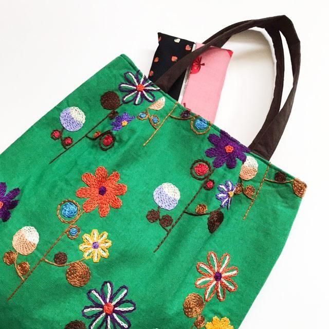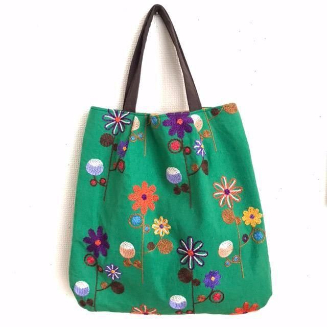角の丸い刺繍バッグ _3 グリーン