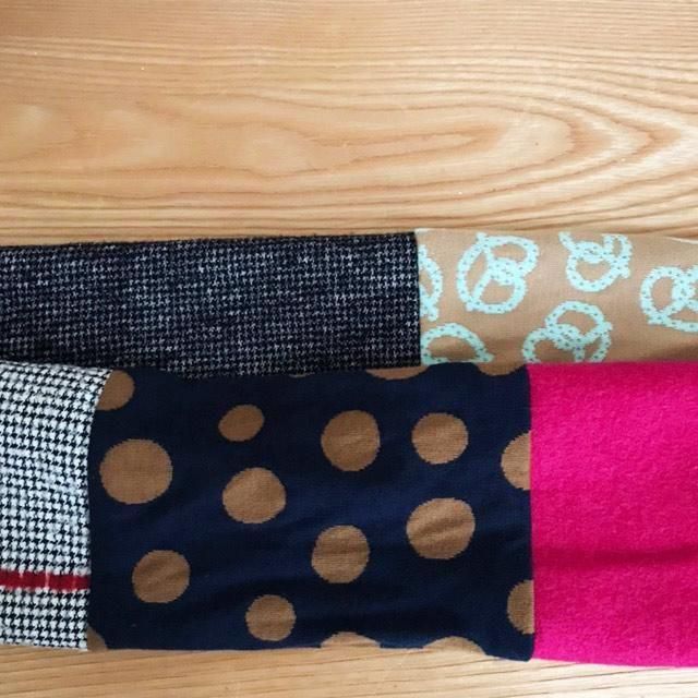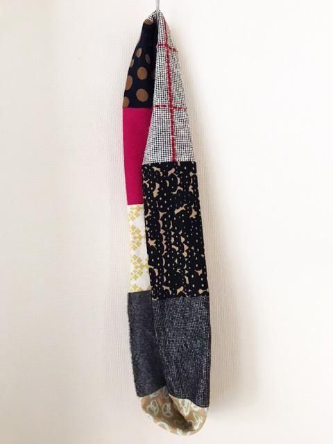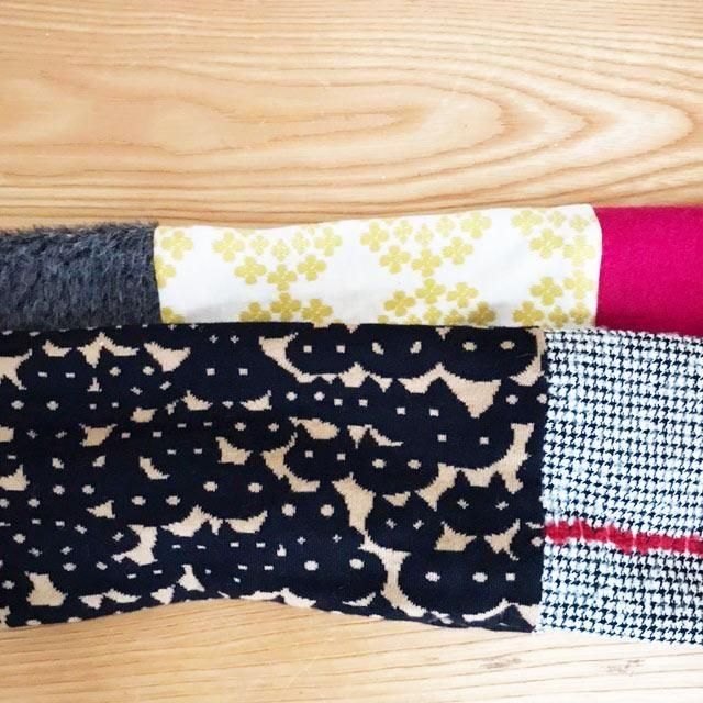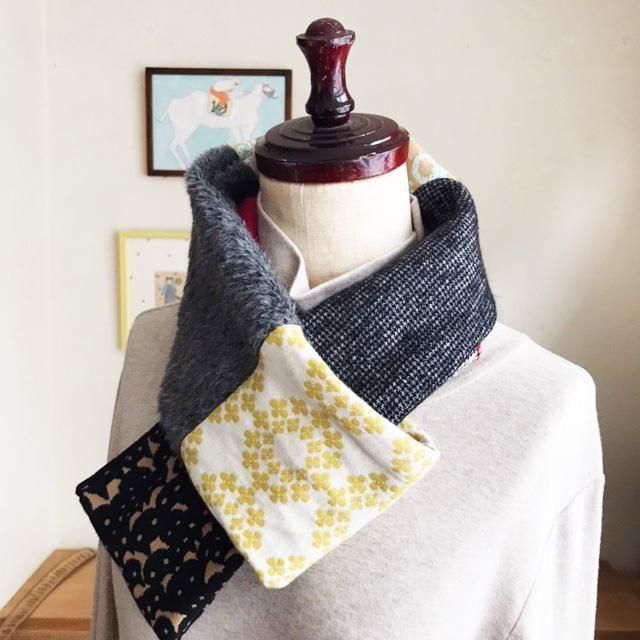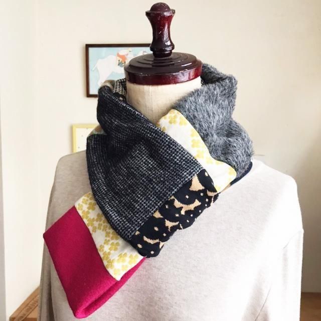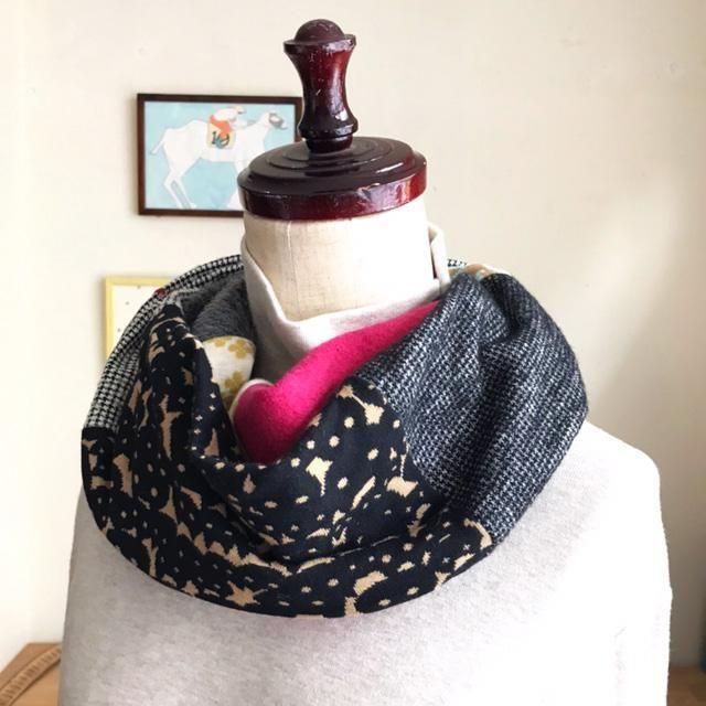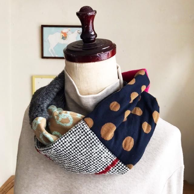 いろんな素材や柄違いを組み合わせてスヌードに仕上がりました。