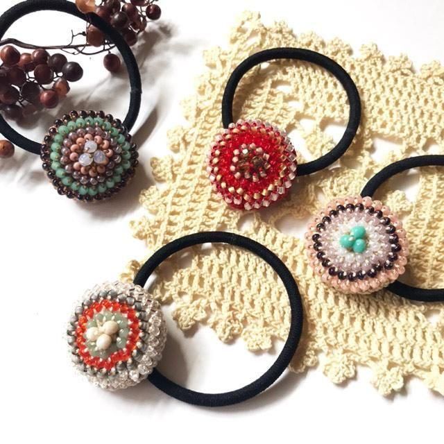 8 色の組み合わせがきれいなビーズくるみボタンヘアゴム